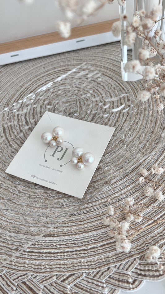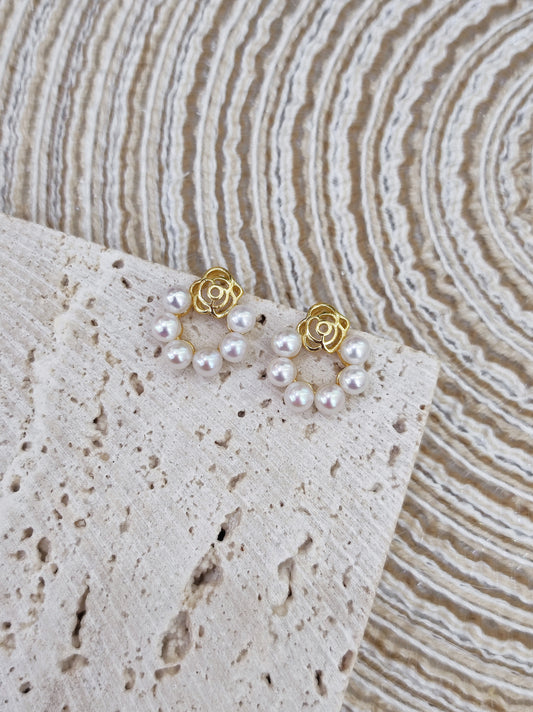 Freshwater Pearl Earring | 玫瑰花花環BB珠耳釘
