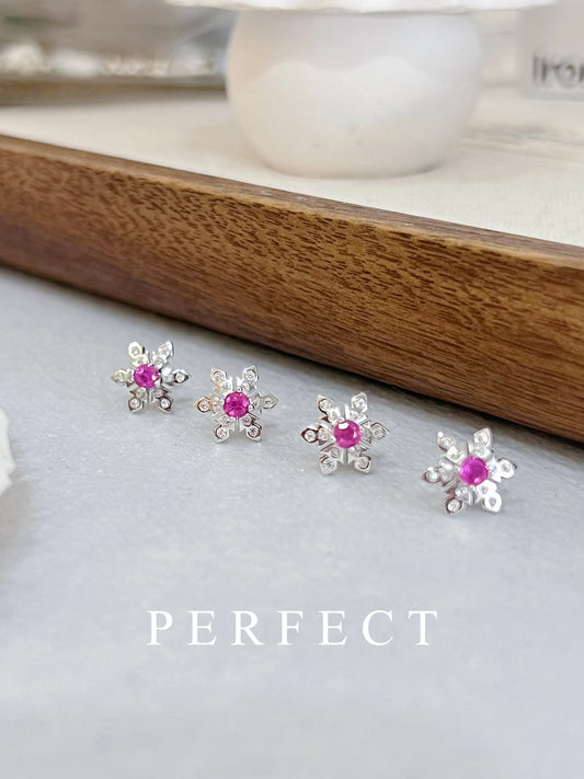 ✨Pinkish Ruby Snowflake Earrings| 紅寶石雪花耳釘
