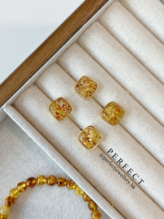 ✨Piebald Amber S925 Earrings✨🌸花珀S925耳釘