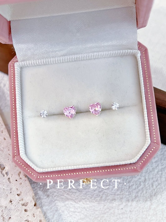 [S925] ✨Sparkle Heart Earring Set |蘇聯鑽粉心耳釘套裝✨