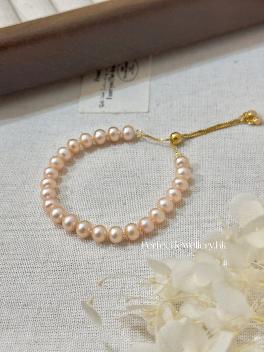 Freshwater Pearl S925 Bracelet | 粉橙淡水珍珠伸縮S925手鍊