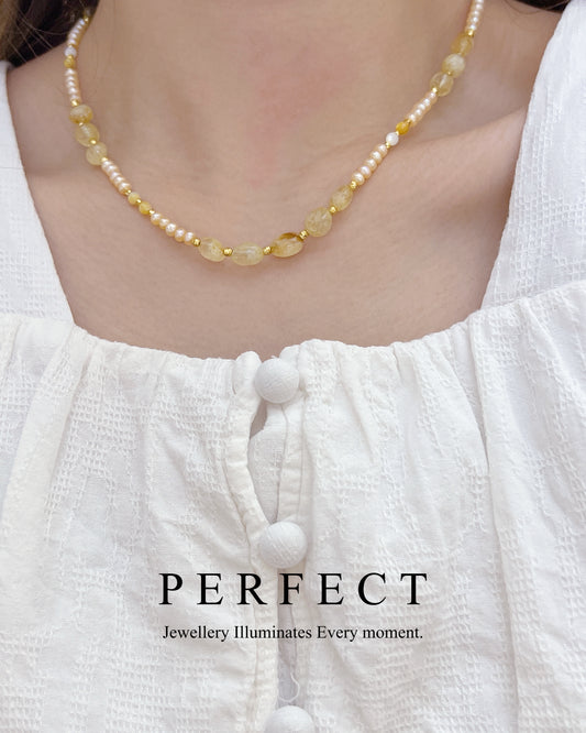 [S925]✨Carl | Citrine Freshwater Pearl Necklace 淡水珍珠黃水晶項鍊✨