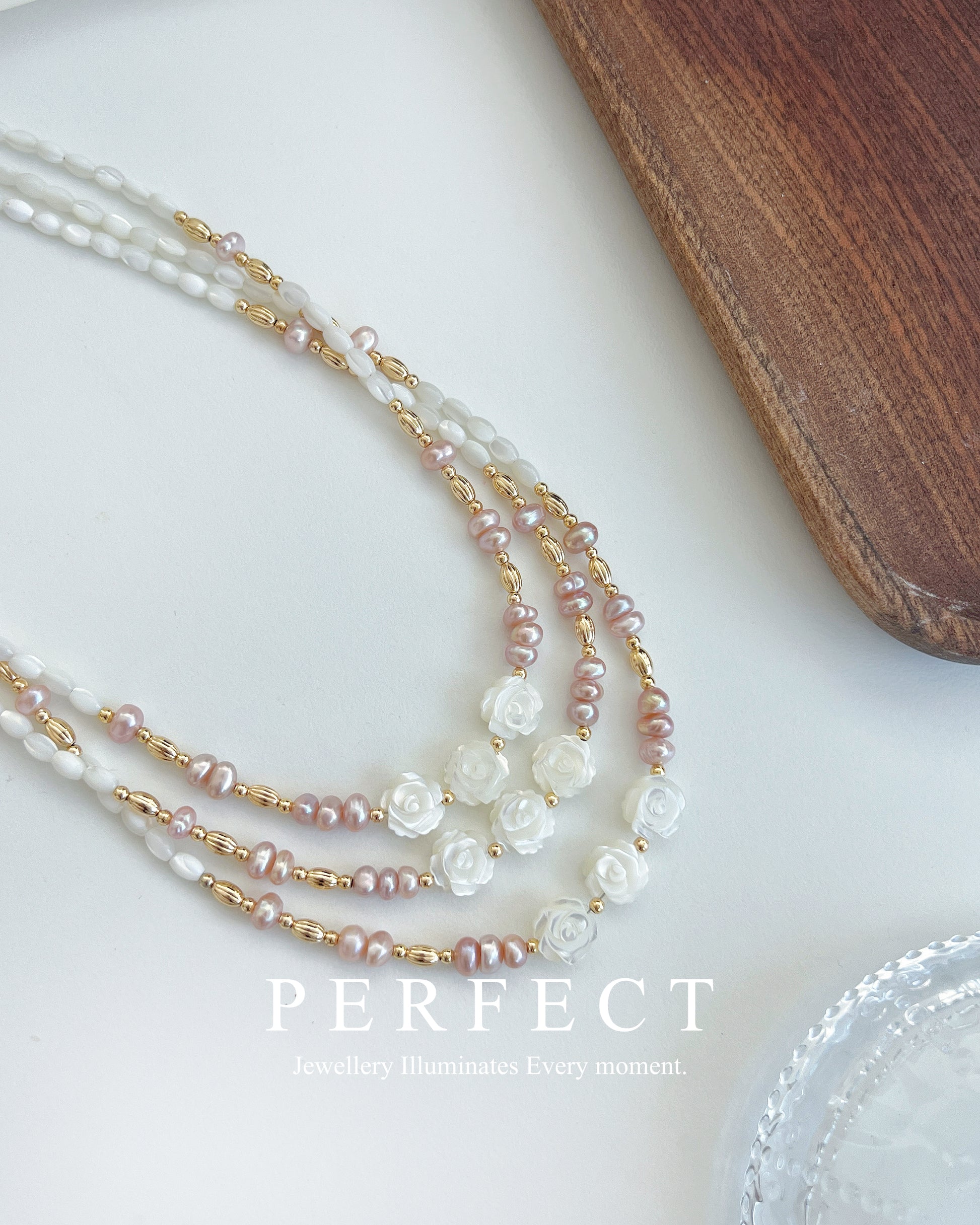 Rosy🌹✨Freshwater Pearl MOP Necklace |淡水珍珠母貝玫瑰項鍊✨
